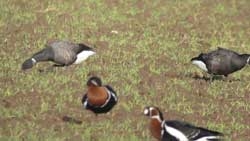 Red-breasted Goose, two of which are wintering with Brents in North Lincolnshire.