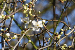 Unfortunately it has not been warm enough for pollinating insects to emerge, so trees and shrubs in bloom now are unlikely to bear fruit.