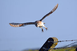The sequence of four photographs taken by Libby Owen depict a successful hunting trip for one of the local Barn Owls with the unfortunate vole meeting its' end in the bill of this silent hunter. ©