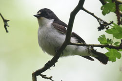 The RSPB reserve of Dinas in mid Wales is likened to the rain forests of the tropics. This is due to its rich and varied flora and fauna. Here we found many bird species that are fast disappearing from other parts of the country. Pied Flycatchers are an iconic species of Sessile Oak woods in western Britain. As their name suggests they require an insect rich habitat and somewhere to nest. Availability of natural nest holes in trees was recognised as a limiting factor, so at Dinas and other reserves, the provision of purpose built nest boxes has been enormously beneficial to this species and the closely related Spotted Flycatcher.