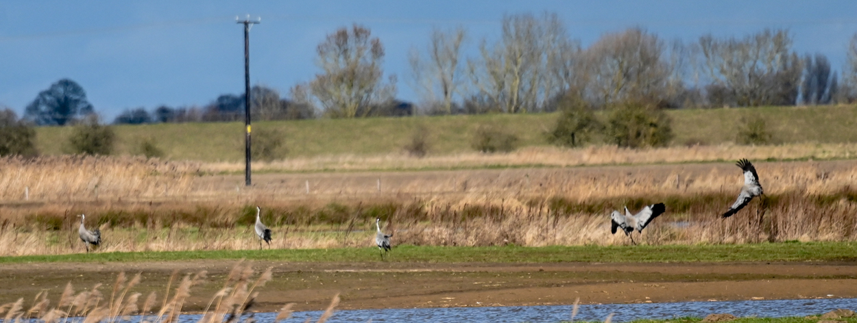 Another exotic looking bird that winters in my locality is the Common Crane. I reported in an earlier edition of Country Eye that they bred in Lincolnshire for the first time in 400 years during the pandemic lockdown in 2020, at Willow Tree Fen nature reserve. Since 2022 the breeding birds have stayed on the reserve for the winter months and their presence has attracted other cranes to do the same. In 2023 no fewer than 3 pairs attempted to nest on the reserve with another pair in residence nearby. When I visited the reserve a few days ago 9 cranes were present and some were displaying and bugling loudly. Clearly the birds are already competing for nesting territories. It will be interesting to see how many will nest on the reserve this spring. Major improvements to the reserve's habitats have been undertaken with several new scrapes and pools created on what used to be dry and rather uninteresting grassland. In addition to the cranes the reserve hosts one of the largest harrier roosts in the county with over 20 Marsh Harriers and a couple of Hen Harriers coming in most evenings during the winter month.. It also attracts a large roost of Goosander sometimes exceeding 100 birds!